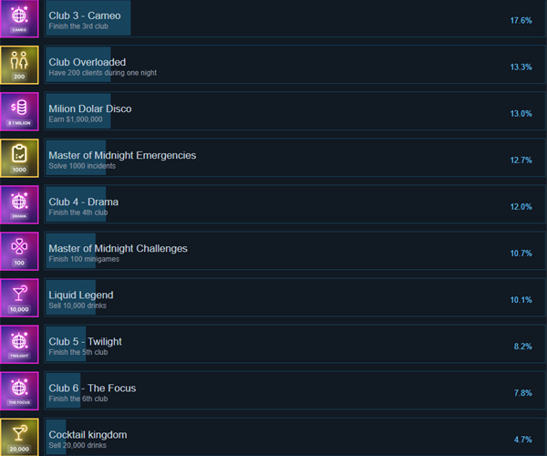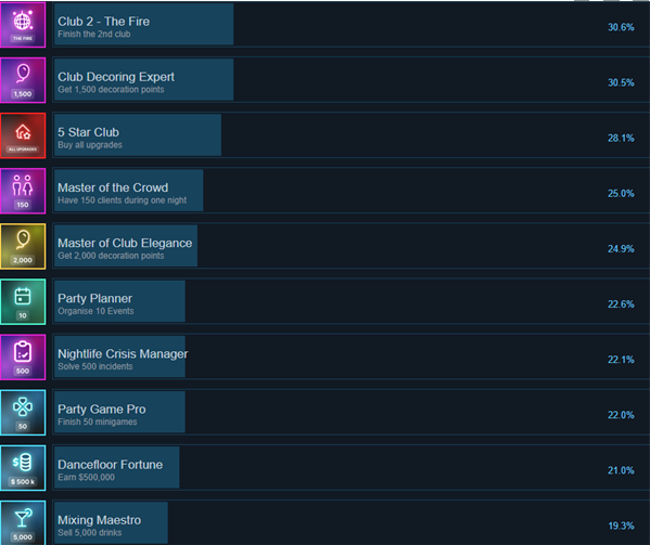 你的成功将取决于客户的满意度。每位客人都有自己的个人需求,你必须满足他们的需求才能让他们留在俱乐部。顾客喜欢时尚鸡尾酒杯中的优雅饮品?或者他们想随着最火热的歌曲飞舞至黎明?请确保音乐、氛围和服务都满足客户们的期望,这将是你的工作。请照顾好你的客户,感谢他们将你的俱乐部推荐给其他人,并提高你的声誉。请应对意外事件,溢出的酒精、马桶堵塞、顾客醉酒,你会忙得不可开交!