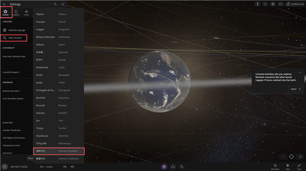 2、点击General-Help Translate,下滑找到简体中文并点击确认;