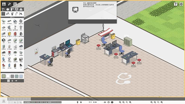 ②建筑模式,此时时间暂停,你可以选择建筑、设备对医院进行修建。
