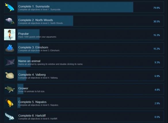 作为一款模拟游戏,本作的成就数量还是比较少的,那么有哪些成就呢?小编带来的就是巨型水族馆全成就达成条件汇总,对于成就感兴趣的玩家不妨点击进来看看都有哪些成就吧。