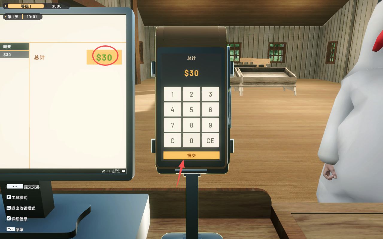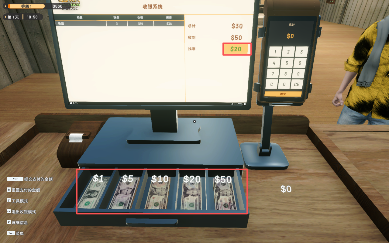 8、玩家此时需要在收银台充当收银员。