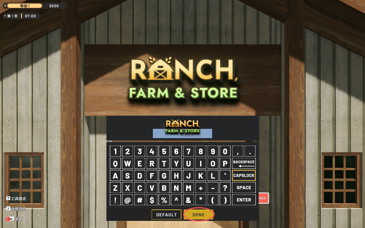 1、进入游戏,玩家可以自行设置店铺的名称,完成后,点击屏幕下方的“DONE”。