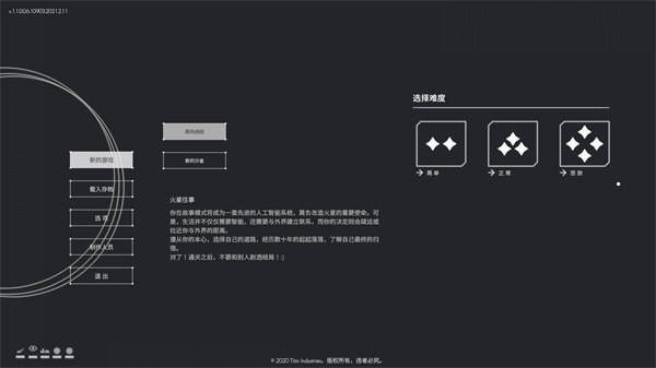 繁星路叙事丰满,玩家会多次面临进退两难的境地,需要作出影响整颗星球的决定。透过初生的人工智能的眼睛观察这个世界,与它一同徜徉“自我探索”这片艰险的海洋,与它一同决定人类未来的命运。感受你不断演化的程序,面对颇具挑战性的道德概念,经营你与拓殖人员的关系,他们需要你的帮助,才能在火星生存下去。改造行动最终何去何从,将由你一次次的选择决定。