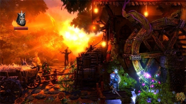3、物理谜题设计:游戏关卡中充满了基于物理法则的谜题,玩家需利用环境和道具来克服障碍,如让法师召唤箱子当立足点通过毒沼,或让骑士砍断绳索用巨石撞出通路等,每个场景都有多种通关方式。