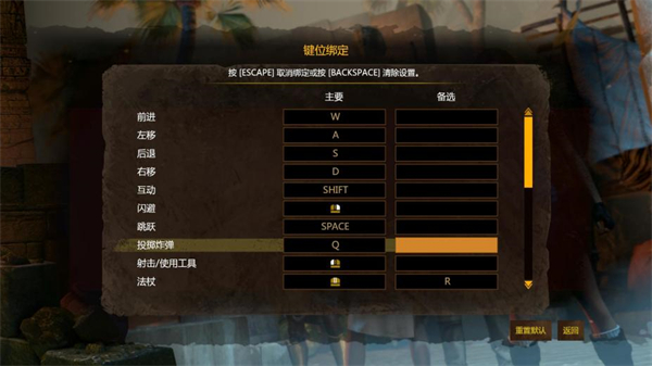 鼠标右键:翻滚躲避;