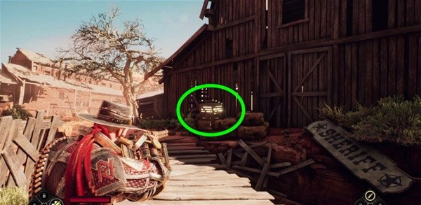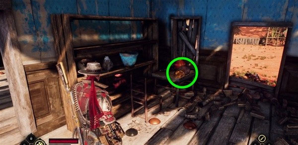 2、击败两名枪手后,进去前面房子,在右侧架子上拿到30钱。