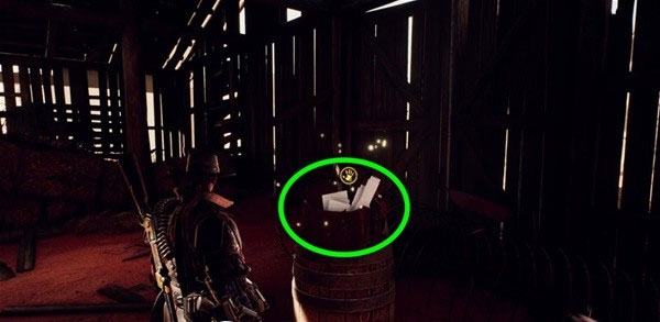 4、打开上一个宝箱后离开,出门左拐进入旁边建筑,在木桶上找到血役纹身方案。
