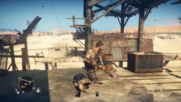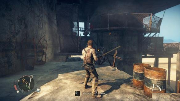 在MAD MAX中,大家要养成一个习惯,看见这样的火塔,就用鱼叉把它拉倒,可减少该地区的警戒值