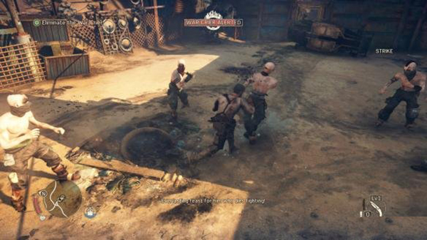 这个战斗指的是肉搏战,肉搏战的要素很多,通过完成挑战提升名声等级(人物等级)来解锁,动作也超级多,MAD MAX的各种愤怒终结技也很直接暴力,大部分是MMA和职业摔角里的动作,动作细节调教的很好,既能体现人物角色的力量感和打击感,同时也能体现出身上一身装备的适当笨重感。