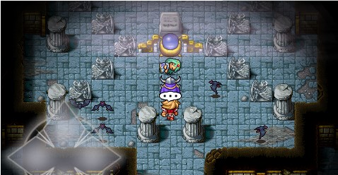 来到大地图,往柯尼利亚城的北边一直走就可以到达神殿。进入神殿后,先往左上及左下的房间内拿宝物(左上:帐篷及药草,左下:帽子)