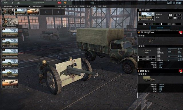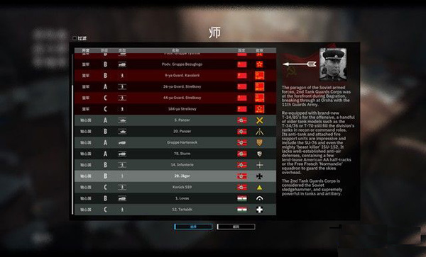 选择第28猎兵师团,主力是步兵的猎兵小队,反坦克力量以坦克猎手为中坚,配合迫击炮和150mm火炮的支援打击,空中只需要Fw190A制空即可。