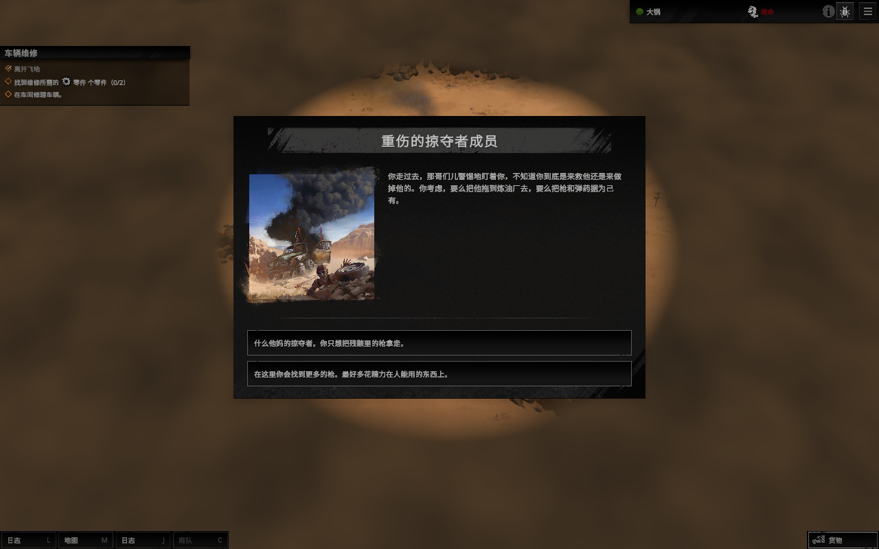 4、玩家可以自行选择,是直接拿走相关物品,还是救援重伤的掠夺者。