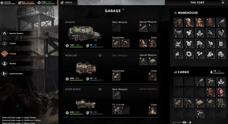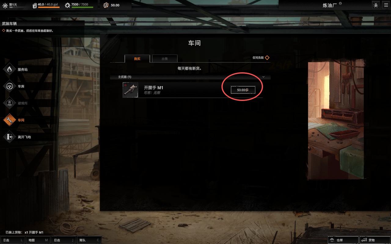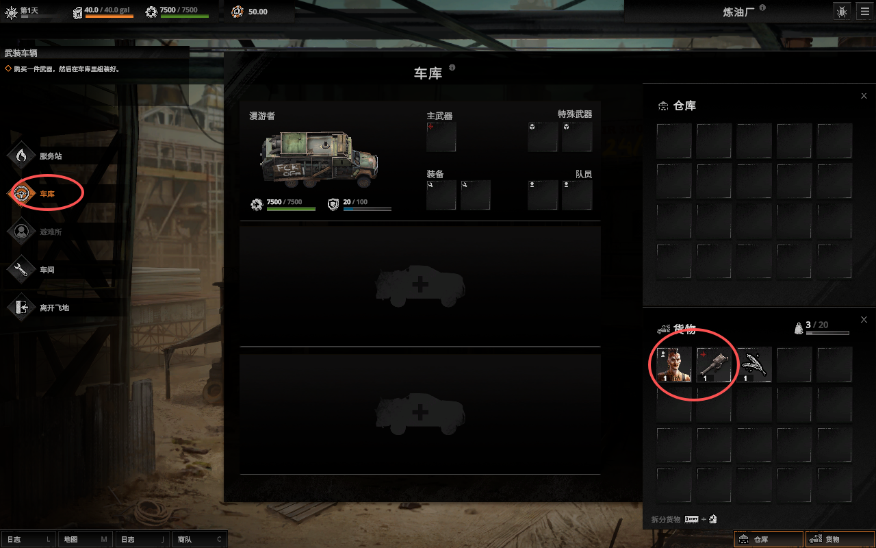 9、随后点击“车库”,将屏幕右侧的装备都装备上车,不同的物品也可以放置在仓库。