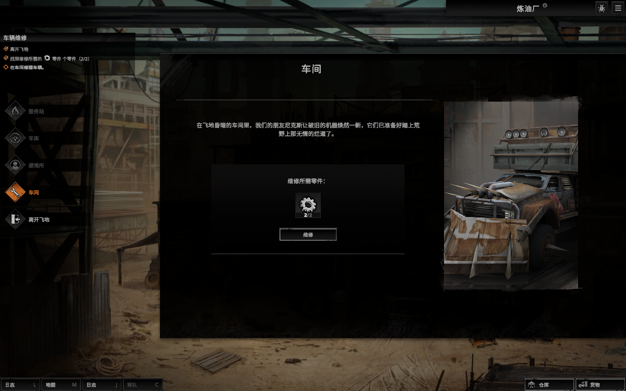 3、随后点击飞地下方的“废墟”,可以从中寻找到修复战车的零件。