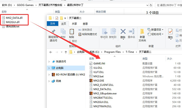 12、打开霸图2库存补丁文件夹,把里面的MK2_DATA.dll、MK2GUI.dll文件,复制到游戏根目录下;