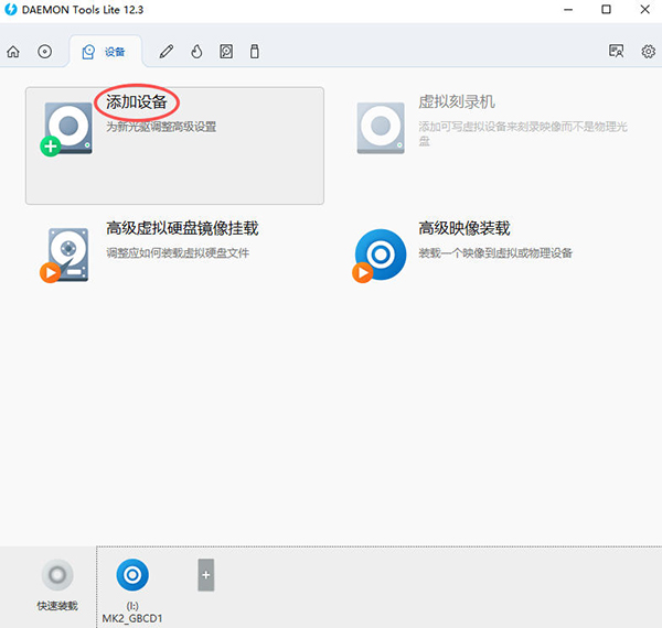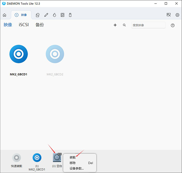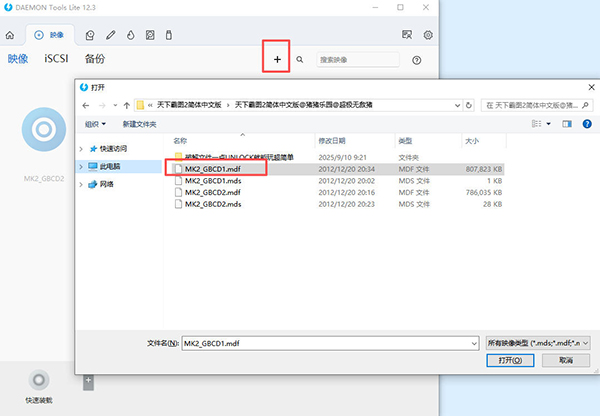 2、打开Daemon Tools Lite,点击映像,再点击+,选择MK2_GBCD1.mdf文件;