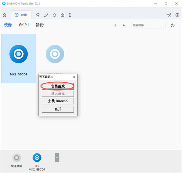 4、对准MK2 GBCD1左键双击,选择安装游戏;