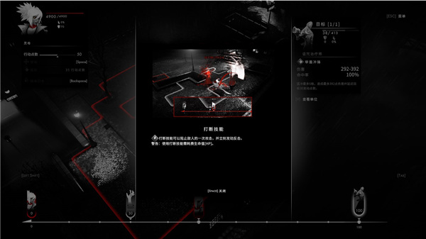 值得注意的是,每个角色有 100 行动点数,如果你一次使用超过 50% 的行动点,角色就会因过度劳累而导致下次行动间隔时间变为原来的两倍长。这是游戏中最主要的一个战术要点,玩家必须评估自己能否承受得起这段空档期所带来的风险。