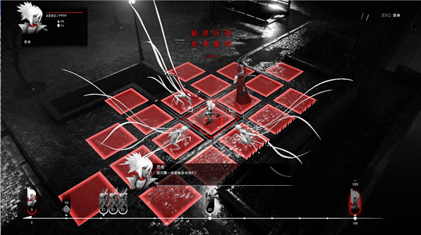 与《幽浮》这类严格遵守「你走完、我再走」的回合制游戏不同,《彼岸花》的行动要依据屏幕底下时间轴的排布来进行。时间轴会依据角色初始状态的不同来排列各自的行动顺序,这意味着游戏在战术层面上不存在太多不确定性。如果你不喜欢敌人抢在你之前打断你的流畅击杀,可以通过诸如盾牌猛击等特定技能让敌人陷入晕眩状态,也可以通过某些增益让友方角色直接跳到时间轴的前部位置。