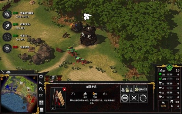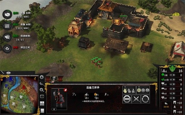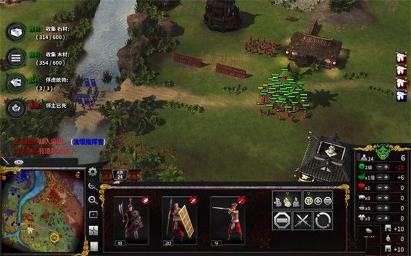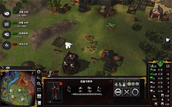 这一关的胜利条件是俘虏三个统帅并且手机600份木材和石料。