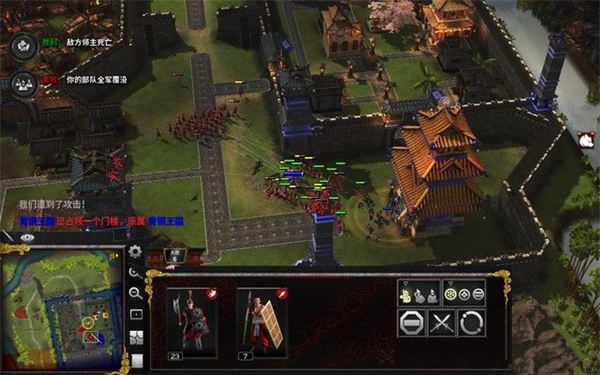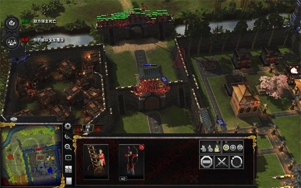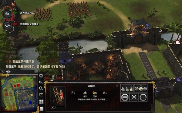 最后,集结我们的军队,进攻东北角的敌军基地吧,远程兵先将城墙上的敌军清理,步兵攻击城墙将其摧毁,然后占领要塞,干掉敌军统帅即可。