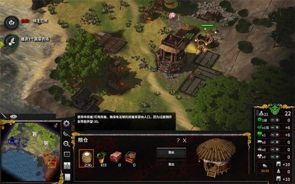 首先,建造伐木站和农田,确保木材和大米的供应,等资源足够后再建造房屋,房屋决定了人口上限,是暴兵的前提。