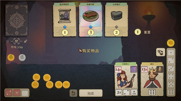 4、在冒险途中,玩家可以在商店收集各种道具和装备。这些道具有些可以增加投掷骰子的次数,有些可以增强角色的技能效果,还有些可以带来强大的战斗增益。然而商店只能通过金币购买道具,因此玩家需要屯大量的金币,买到比较有价值的道具。