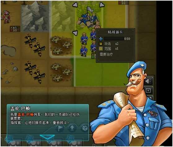 空投点就在左边不远的地方,不过要小心路边的暗堡,暗堡攻击很高,打人很疼。还有就是要小心敌人的合击,尽量不要往敌兵多的地方冲上去,火炮有射程优势,利用好它的话基本可以不死一个兵冲到空投点面前了