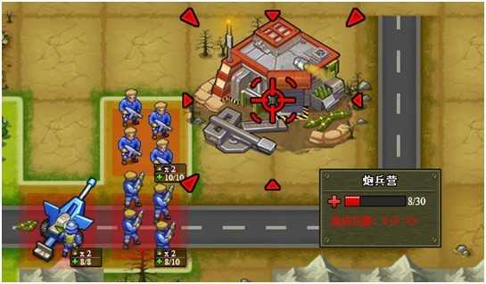 8、空中打击完成以后,我们只剩下最后一步就可以获得关卡的胜利了,就是夺取炮兵营,这个时候路上已经基本就只有几个残血的小兵了,轻松来到炮兵营面前,等待胜利吧