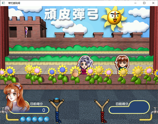 新研发的射击游戏。目标就是射中前方的明星立板,记得要射中异性才有分数喔。