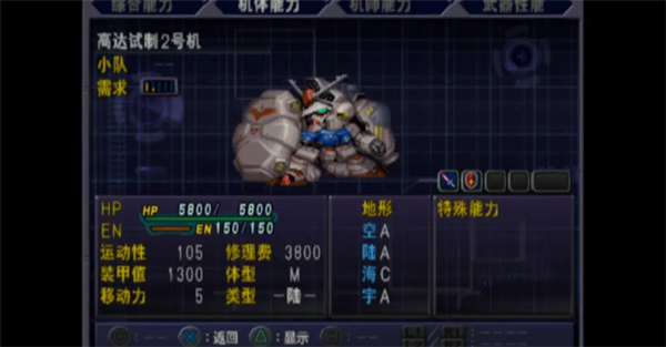 这里是V高达的剧情再现,先让玛贝尔不断地逃跑,然后等胡素出场与其合体成V-GUNDAM。第四回合时亚加玛便来增援,而敌人则在北方会有增援。此次的V-GUNDAM绝对是主力,要大力培养,而且它的地图炮范围非常之广!如果有钱的话就马上改造吧!