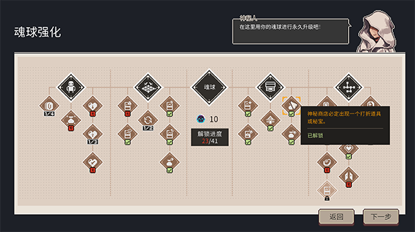 5、玩家每场战斗都会获得局外资源“魂球”,开局时在魂球商店中购买对应服务,不仅能推动角色成长,还能解锁全局规则,让冒险更加轻松!