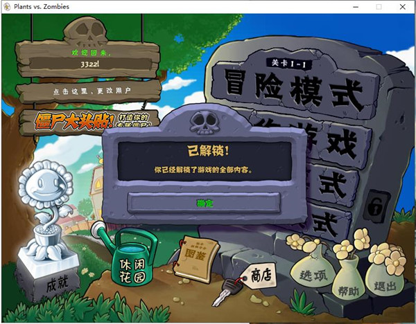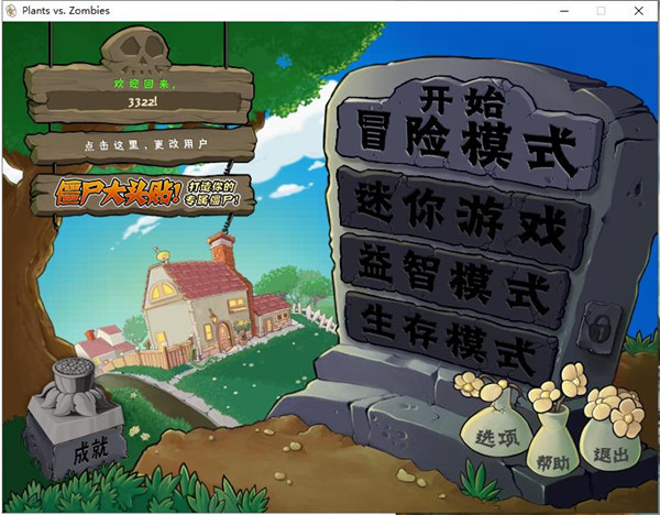 2、双击运行"PlantsVsZombies.exe"程序即可直接打开游戏,如下图: