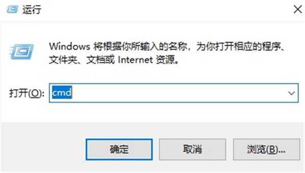 6、接着使用win+R开命令运行框,输入cmd;