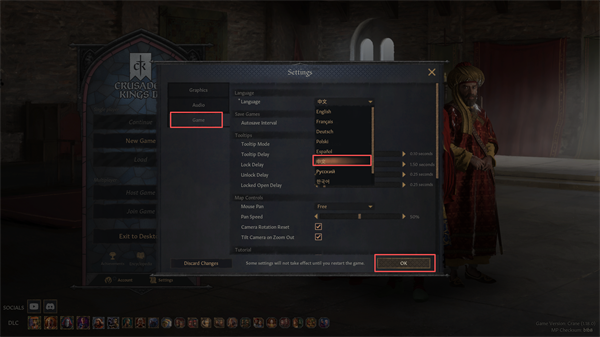 3、重启游戏后,即可享受中文语言,其他语言更改也是同样方法;
