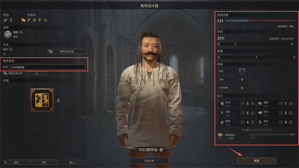 4、创建你的角色名称,以及设定角色参数,点击完成;