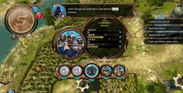 阿达尼亚的守护者(Defenders of Ardania)是一款融合即时战略元素的塔防游。游戏中玩家需同时扮演防守者与进攻者双重角色:一方面在绿色网格区域建造箭塔、魔法塔、减速塔等18种防御设施,拦截敌方单位入侵;另一方面生产卫兵、巫师、矮人飞行器等18种作战单位,主动派遣军队摧毁敌方基地,通过战斗积累经验解锁强力英雄单位。并且,游戏包含人类、精灵、矮人三个基本种族及一个隐藏种族,每个种族拥有专属建筑、单位与科技树,每个种族提供24种不同的单位供玩家进行防守或攻击,策略深度显著!