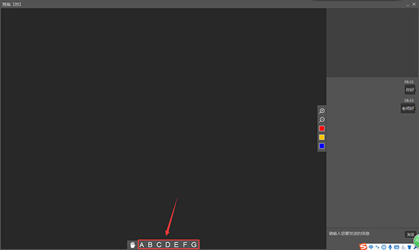 7、快速选择,在屏幕的下方,显示的一列字母区域即为快速选择区,学生通过点击相应的字母,快速反馈给老师。(点击之后,只有老师可以看到你的选择,自己和其他同学是看不到的)。