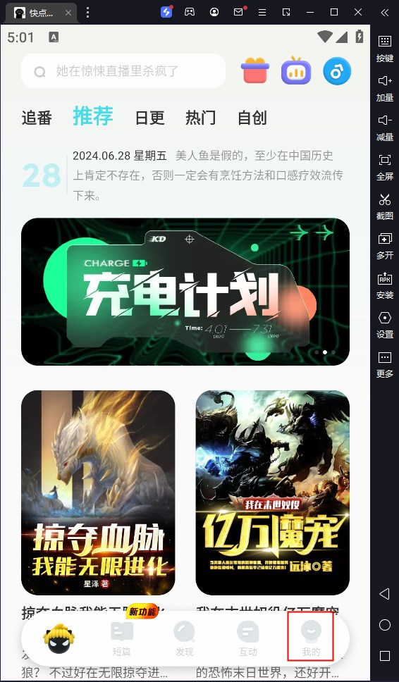 1、在本站下载快点阅读电脑版后打开,点击我的;