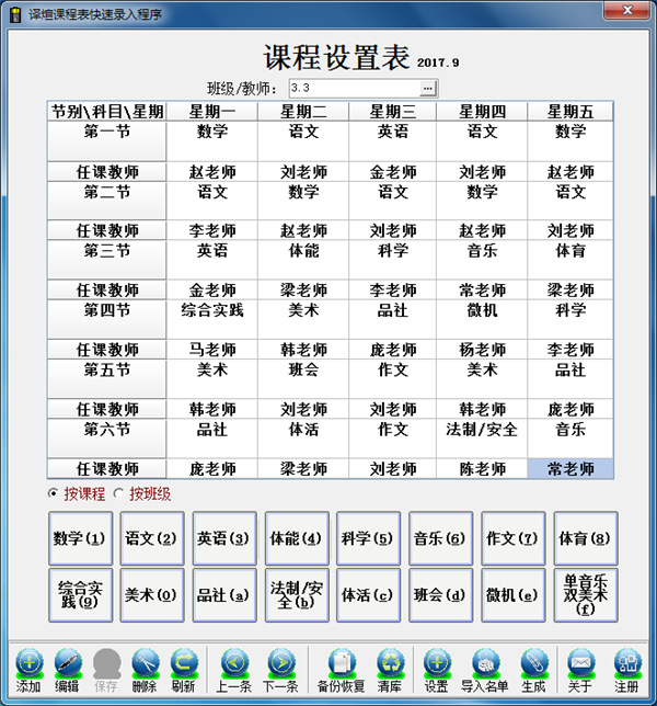 录入课程表时,可直接输入班级名称或者教师姓名来区分。