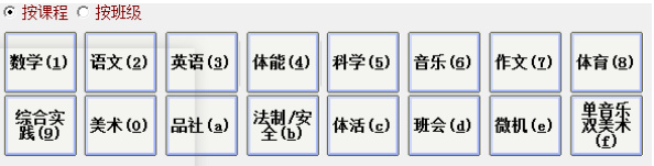 1、课程录入:切换到“课程”模式,自定义的课程名称将显示在下方的16个操作按钮上,单击按钮即可将课程名称快速添加并自动切换到下一节次的空格中,连续操作可快速完成此课程表的所有课程信息录入。