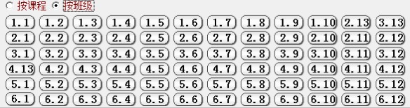 2、班级录入:切换到“班级”模式,自定义的班级名称将显示在下方的72个操作按钮上,单击按钮即可将班级名称快速添加并自动切换到下一节次的空格中,连续操作可快速完成此课程表的所有班级信息录入。