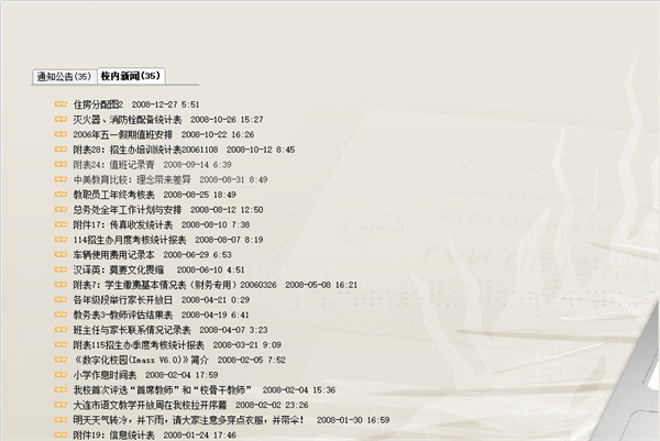 中间区域为新闻公告区,可以通过 校办-新闻备忘 发布。双击“最新公告栏”标题,刷新最新新闻公告内容: