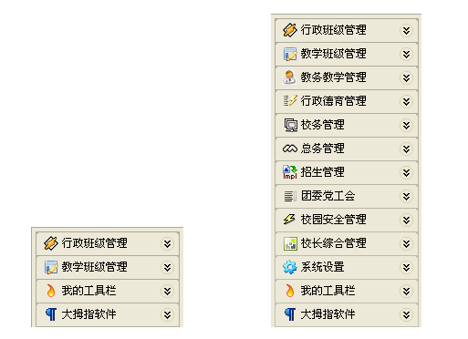 (左图为:权限较少用户的登录界面导航栏)(右图为:权限较多用户的登录界面导航栏)