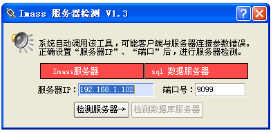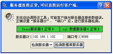 添加正确的服务器IP、端口号,然后点击按钮“检测服务器”,再点击按钮“检测数据库服务器”,若一切正常无错误,窗口状态(如下图)