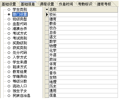该模块的主要功能是对学校的作息时间进行设置,该模块信息的设置自动与考勤机相连,考勤机以该模块设置的信息为标准,对学生、教工等进行考勤。