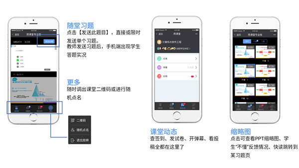 随堂习题、课堂小测、不懂反馈、弹幕、投稿、随机点名,所有功能一网打尽!