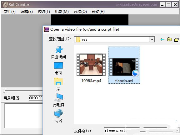 5、完成以上设置,那么就可以点击“电影”—“打开”选项,将视频文件导入SubCreator了