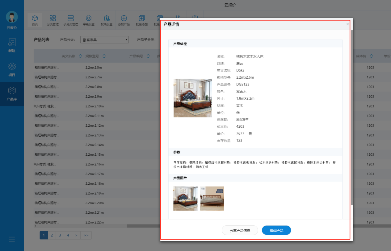 所以搭建线上产品库是很有必要的,把产品的描述信息提前录入完善,后期直接使用就可以了。产品数据录入后,方便后期快速的查找产品,制作报价单时也可以随时调用,节省了很多时间。
