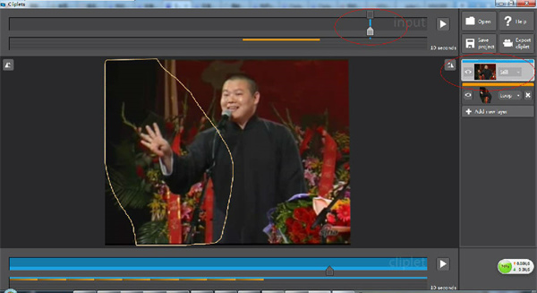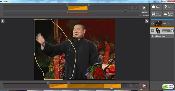 6、做完点下边的播放按钮看效果,然后保存,save project 存成xlcp文件,export cliplet 存成gif。